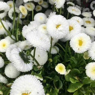 Саженцы Маргаритки многолетней Tasso White (Bellis perennis) могут расти на одном место около двух лет. В высоту достигает 15 сантиметров. Предпочитает солнечное место с хорошо дренированной почвой. Обильно цветут на богатых гумусом суглинках. Тассо Уайт отличаются многочисленными цветоносами, безлистными, щетинисто-опушенными. Соцветия в виде корзинок, белого цвета, раскрываются в мае месяце и радуют взгляд до июля месяца. Широко используется в обрамлении клумбы, балконного ящика или альпинария.