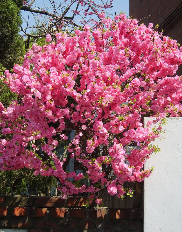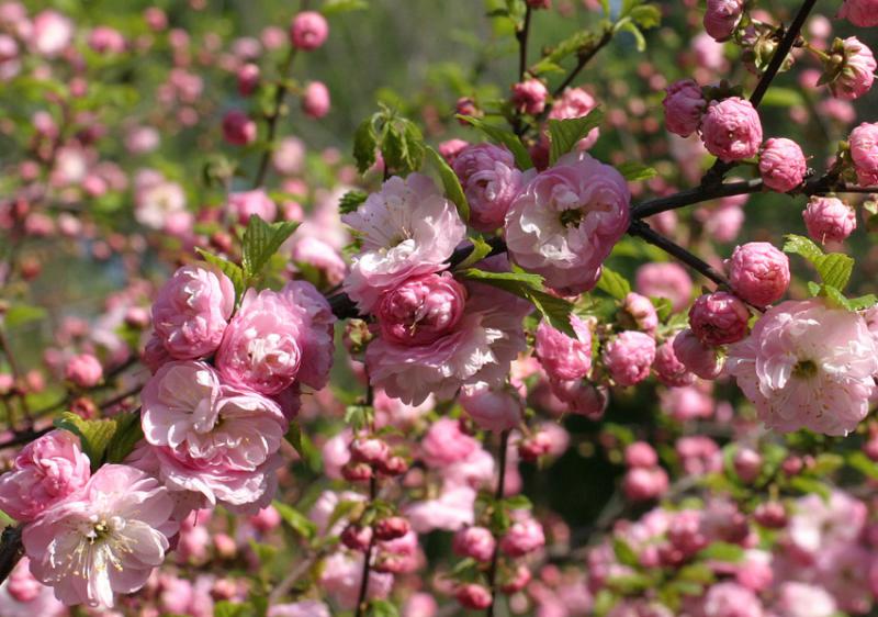 • устойчивость к вредителям и болезням. Во время цветения крупномеру нужен обильный полив для наиболее долгого (до 35 дней) цветения. Наиболее подходят для посадки солнечные участки. Миндаль Prunus triloba) - отличное украшение для разного рода ландшафтов.