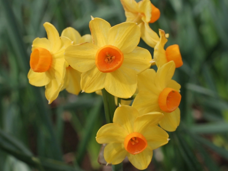 Луковицы нарцисса Карлик Grand soleil d'or используют для оформления клумб, тропинок, рокариев, альпийских горок. Также сорт великолепно подходит на срез и выращивается на подоконниках, террасах. Культура цветет на протяжении 15-20 дней в апреле иногда захватывая май месяц. Главная особенность растения – на одном цветоносе распускается от пяти до десяти бутонов. Окраска нарциссов Карлик Grand soleil d'or насыщенно-желтая, корона ярко-оранжевая. Высота стебля около 30-45 сантиметров.