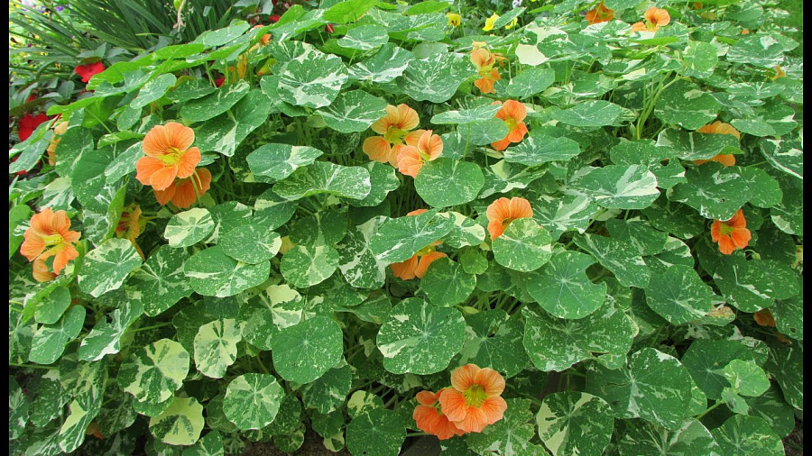 Низкорослая настурция "Аляска Оранжевая" - это настоящее сокровище для вашего сада! Ее лососево-оранжевые цветы привлекут внимание всех соседей и создадут уютный уголок красоты. Высота растения до 40 см делает его идеальным выбором для групповых посадок, а его жизненная форма позволяет легко ухаживать за ним в любое время года.