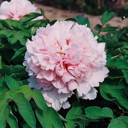 Саженцы пиона древовидного Букет Розовых Гвоздик (Paeonia Suffruticosa), морозостойкого сорта, способны выдерживать похолодания до минус 25 градусов. Кустарник высокорослый, до 1,2 метров. Листва пышная, гармонично смотрится с нежно-розовым окрасом лепестков. Цветение обильное, со второй декады мая по июнь. Все бутоны распускаются практически одновременно. Цветки диаметром от 20 до 25 сантиметров. Соцветия махровые, корончатой формы. Внешне напоминают крупные гвоздики. У пионов этого сорта красивые цветки, от которых невозможно отвести глаз. Лучше всего сорт смотрится в одиночных посадках.