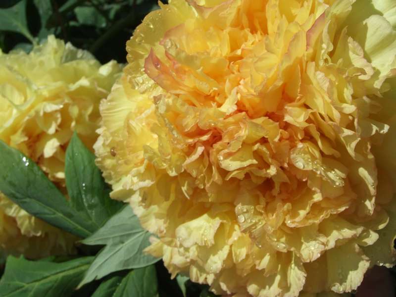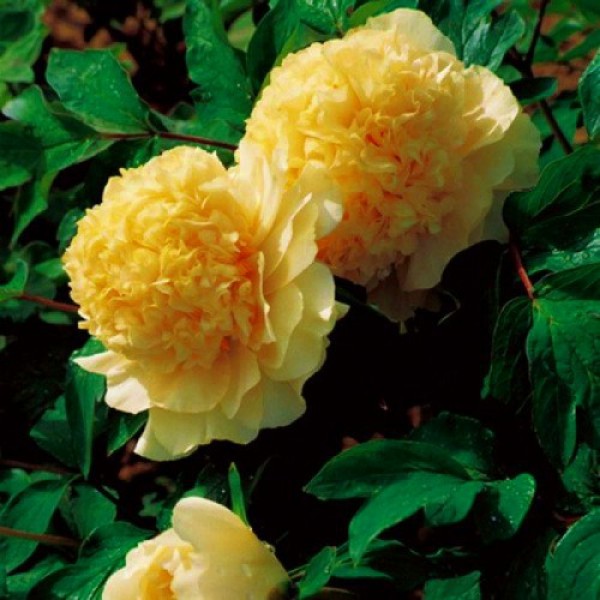 Саженцы пиона древовидного Яо'с Йеллоу (Paeonia Suffruticosa Yao huang) придутся по душе любителям цветков нежного пастельного цвета. Кустарник высокий, достигает до 2 метров в высоту. Стебли плотно усыпаны яркими зелеными листьями. Цветение длится с конца весены до начала летнего периода. На одном кусте может размещаться от 30 до 60 цветков. Цветки крупные -  20-25 сантиметров в диаметре. Махровый цветок имеет очень красивую форму - более мелкие кучерявые лепестки перемежаются с тычинками и окружены по краю большими, развернутыми прямыми лепестками. Сорт отличается очень насыщенным ароматом. Предпочитает солнечные участки или полутень. Грунт должен быть богатым, хорошо дренированным.
