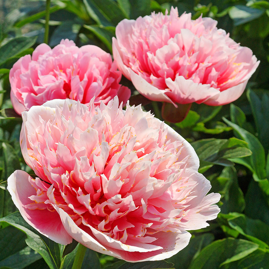 Рассада пиона молочноцветкового Этчет Салмон (Etched Salmon) прекрасно смотрится в небольших клумбах благодаря компактному кусту. Цветок практически идеальной формы, с плотно выложенными внешними лепестками и аккуратно уложенными внутренними. Оттенок колеблется от лососево-розового до кораллового в зависимости от интенсивности освещенности.