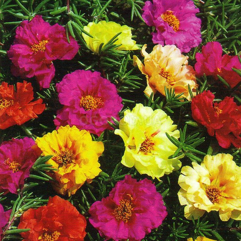 Семена портулака смесь окрасок порадуют тех, кто хочет украсить ландшафт многочисленными цветами ярких расцветок. В набор входят растения с разнотипными соцветиями: