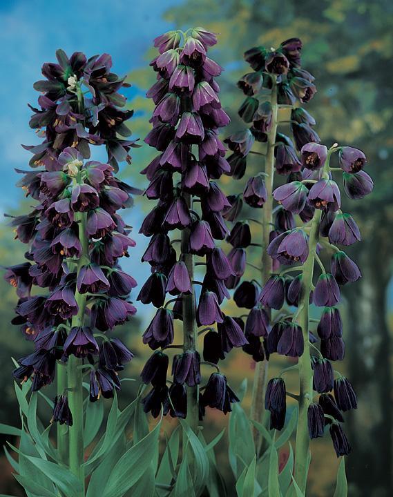 Луковицы рябчика Персидского фритиллярии (Persica) вырастают в высокие стройные растения с голубоватой листвой и множеством темно-красных цветков. Плотный сочный стебель может умещать на себе до 30 густо посаженных конических цветов. Длинные узкие листья создают изысканный фон для темных соцветий. Растение переносит морозы до -29 С. Полезный бонус от рябчика Персидского фритиллярии – мускатный аромат, который отпугивает грызунов от цветника.
