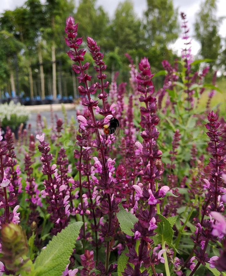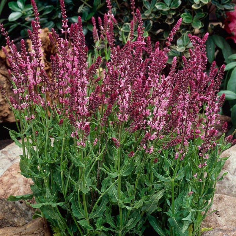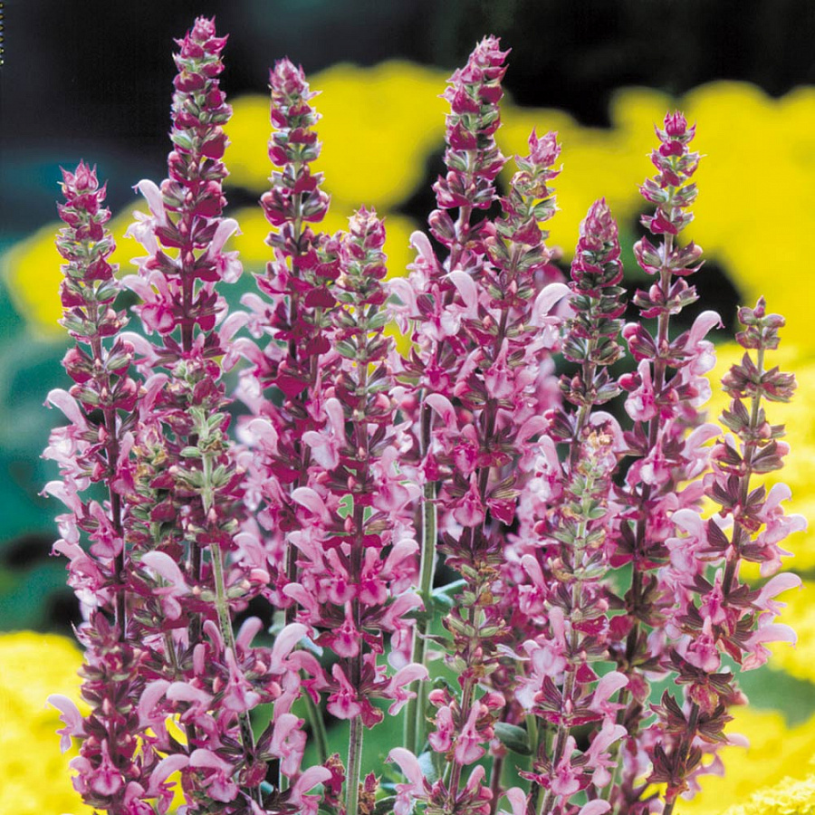 Рассада шалфея дубравного Роуз Квин (Rose Queen) прекрасно играет роль фона для любых сортов роз благодаря мелким розово-сиреневым сидячим цветам, собранным во внушительные свечи колосовидных соцветий длиной 30-40 см. Рост самого растения достигает 60 см. Прямые ветвящиеся стебли и крупные слегка опушенные листья дают рассаде прелестный сизый оттенок до и после цветения. В основном, шалфей неприхотлив и зимостоек, но требует полива при длительной засухе и дренажа во время весеннего таяния снега. Если вовремя срезать засыхающие соцветия, Розовая Королева может цвести до трех месяцев (с июня до сентября).