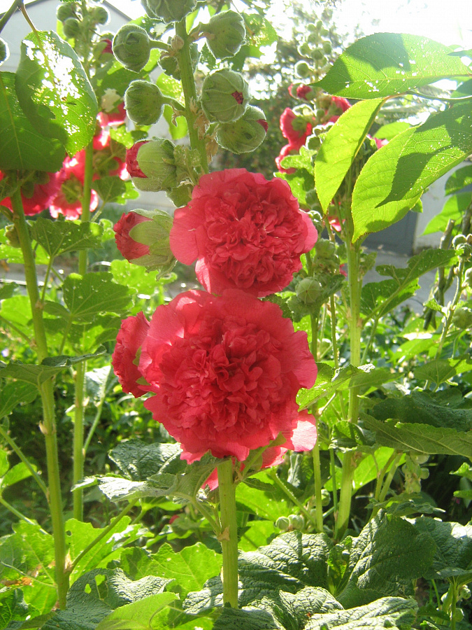 Шток-роза алая - это изысканное растение с великолепными алыми цветками, которые будут радовать ваш взгляд в течение всего цветения. Ее ствол прочный и устойчивый, достигает высоты до 200 см, что делает ее идеальным украшением для вашего сада или огорода. Листья этого растения имеют элегантную форму и насыщенный зеленый цвет, создавая гармоничный контраст с яркими цветами.