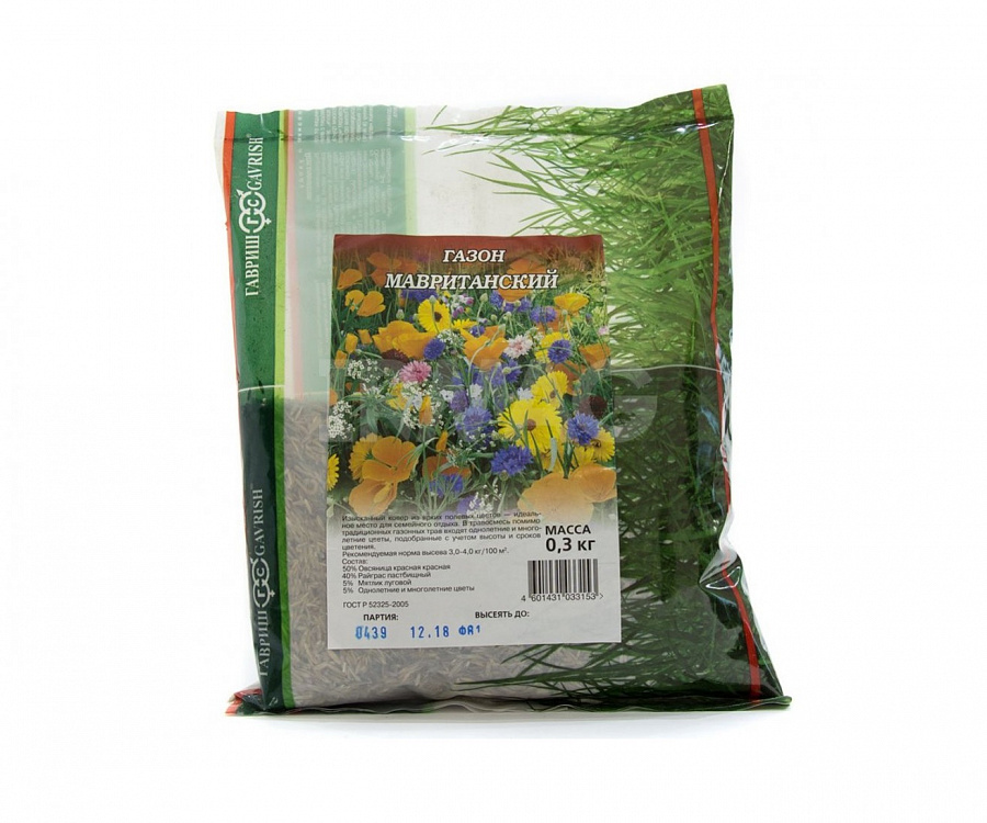 Семена газона "Цветы и цветущие газоны: Мавританский" подобраны таким образом, чтобы получился красивый цветущий луг. Смесь состоит из  75% райграса многолетнего "Калибра", 15% овсяницы красной "Максима1", 5% мятлика лугового "Платини" и 5% дикорастущих цветов (василька, гипсофилы изящной, дельфиниума, календулы лекарственной и так далее). Семена газона "Цветы и цветущие газоны: Мавританский" высевают на участки с любым составом грунта. Покров получается разноцветным: зеленые травинки украшены разноцветными маленькими цветочками.