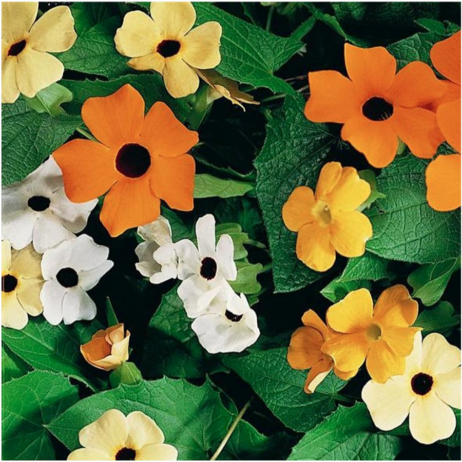 Семена тунбергии «Смесь окрасок» – эффектный микс, который порадует опытных цветоводов и новичков. Растение представляет собой лиану, которая быстро развивается, оплетая вертикальные и горизонтальные объекты. Элегантные стебли с зеленой листвой станут украшением дома, беседки или ограждения. Особенно красиво растение смотрится, когда среди зелени распускаются желтые, пурпурные и оранжевые цветы.
