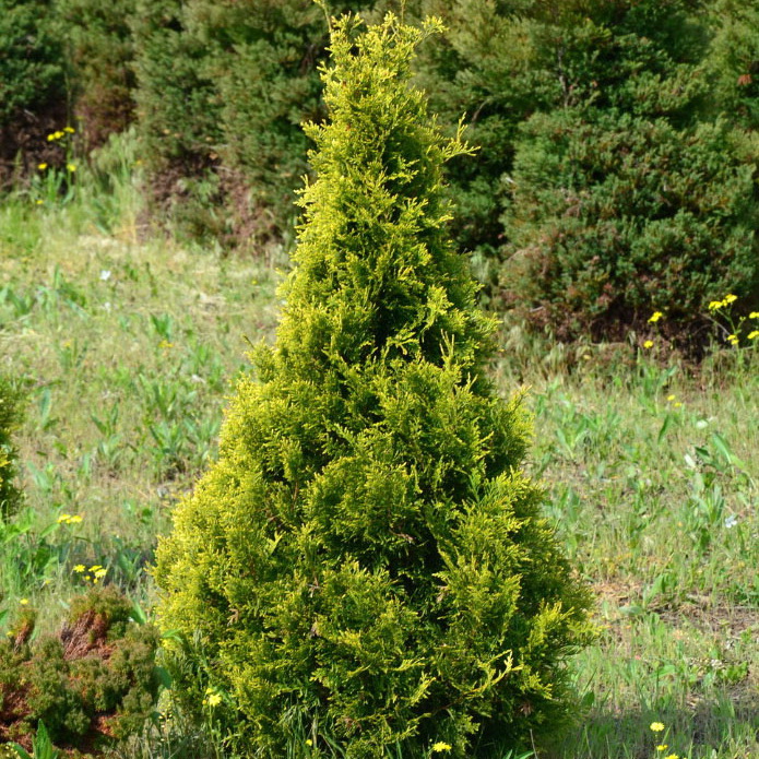 • хвоя светло-зелёного цвета, молодые побеги светло-жёлтого;