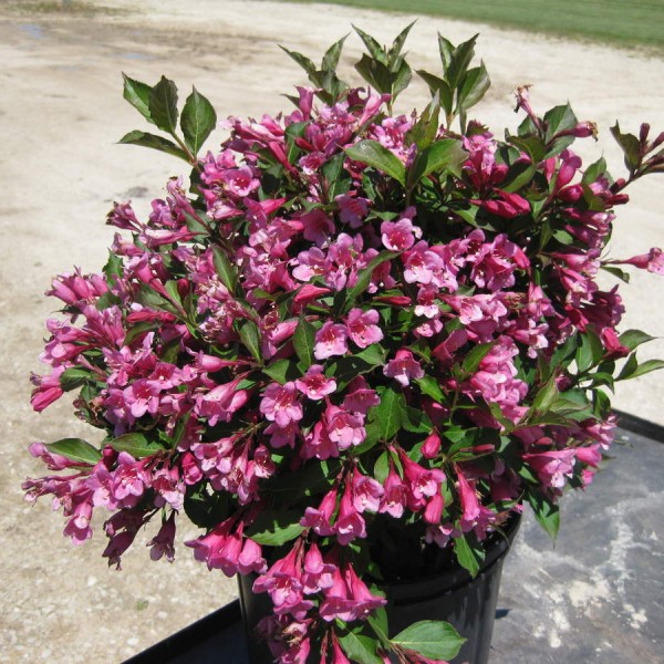 Саженцы вейгелы цветущей Минуэт (Minuet) – прекрасный выбор для ландшафтного дизайна, растения имеют яркие бронзово-зеленые листья и шаровидную крону, расцветают карминно-розовыми цветами в мае – июне, радуют легким ароматом. Медоносные кустарники предпочитают: