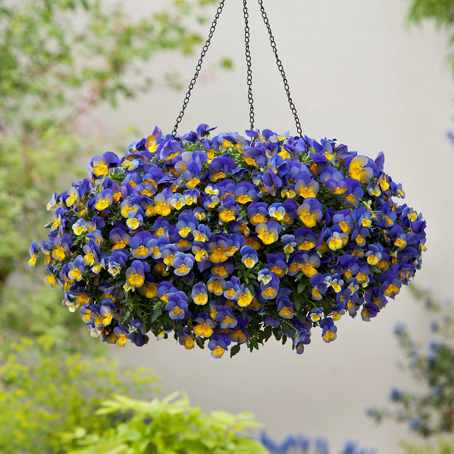 Виола ампельная Cool Wave Morpho - это удивительное растение, которое поразит вас своей красотой и изяществом. Ее желто-синие цветы радуют глаз в течение мая, июня, июля, августа, сентября и октября, создавая неповторимый вид в вашем саду или на балконе. Эта виола отличается компактным размером до 20-30 см в диаметре и высотой до 15-20 см, что делает ее идеальным выбором для групповых посадок, каменистых горок или японского сада.