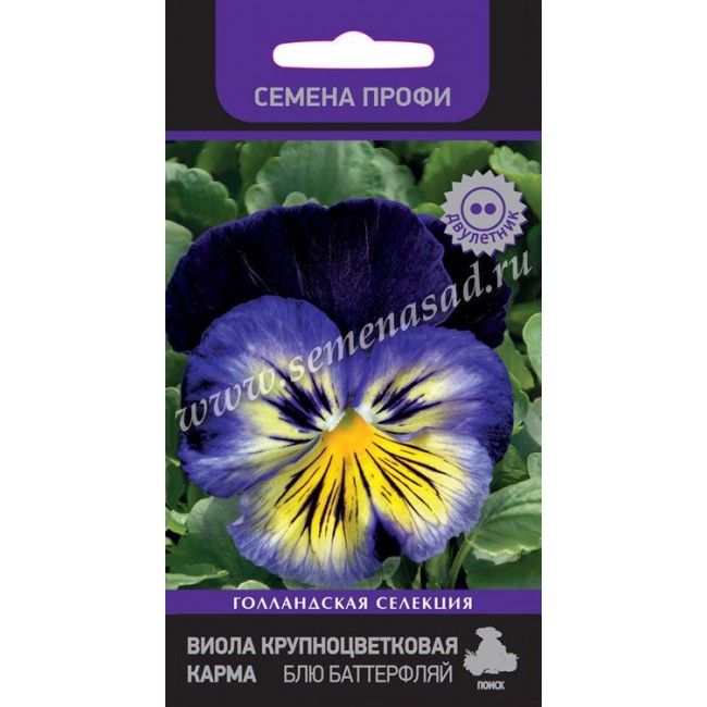 Виола крупноцветковая "Карма Блю Баттерфляй" - это настоящее воплощение нежности и изысканности в вашем саду. Ее фиолетово-желтые цветы привлекут внимание и подарят удовольствие глазу. Растение имеет стебель высотой до 20 см и диаметр цветка до 9 см, что делает его заметным акцентом в групповых посадках. Листья виолы крупноцветковой имеют интересную форму и придают растению особый шарм.