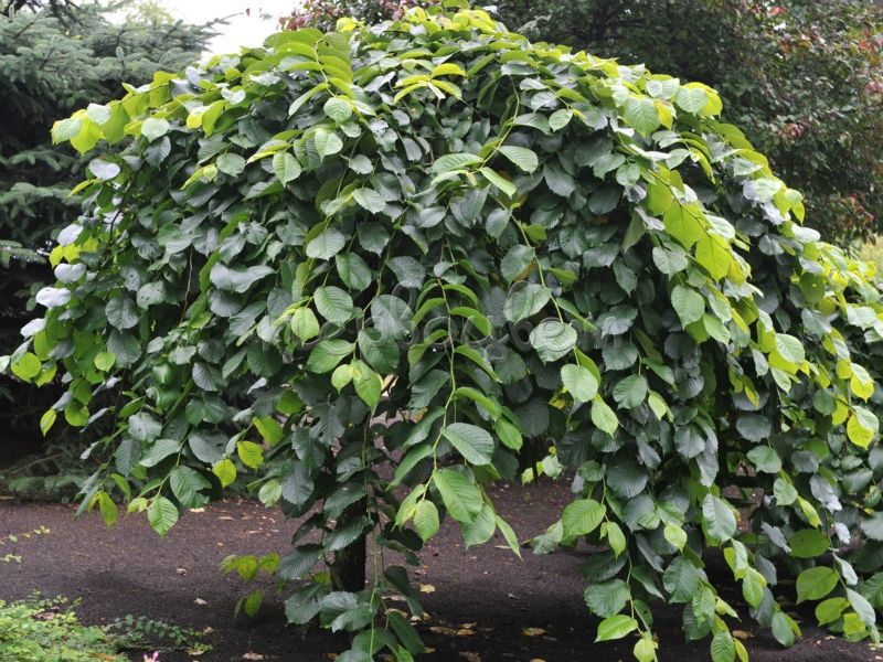 Саженцы вяза гладкого Кампердоуни (Camperdownii) – украсят любой ландшафт зелеными зонтиками крон с плакучими ветвями. Высота крупномеров достигает 5 м. Повисающие ветви с темно-зелеными шероховатыми листьями формируют элегантную зонтичную форму кроны. Весенние почки крупные, круглые, кофейного оттенка. Перед появлением листвы вяз цветет лиловыми цветками. Плодоносит крылатками. Сорт вяза гладкого Кампердоуни идеален для формирования аллей и арок. Достоинства: