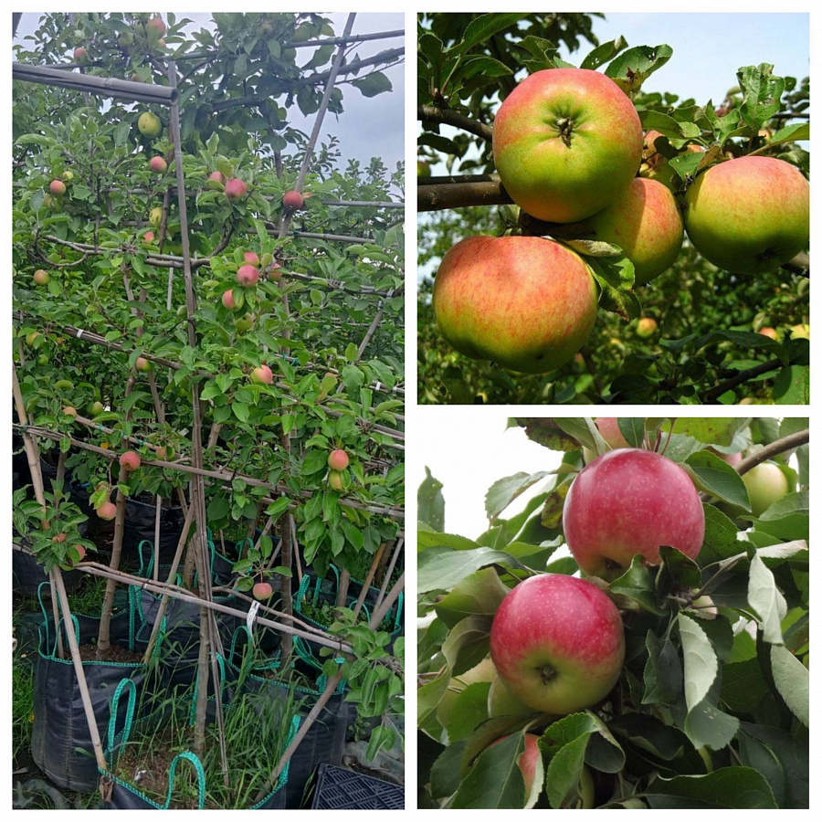 Яблоня пальметта на шпалере 5 лет+ орловим-мелба - это великолепное дерево с изящными листьями, которое порадует вас своими сочными и сладкими плодами. Ствол этого растения прочный и устойчивый, что делает его идеальным выбором для групповых посадок или одиночных посадок в вашем саду.