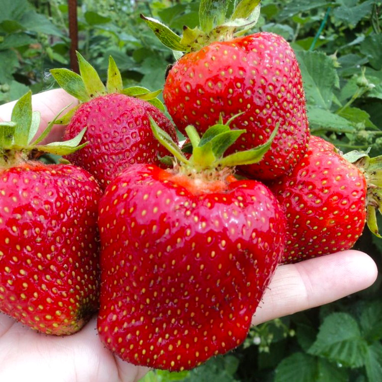 Рассада земляники садовой Джоли стала настоящим фаворитом последних нескольких сезонов. Выведенный селекционерами Италии сорт со средним сроком созревания характеризуется хорошо облиственными кустами, а также мощными и крупными цветоносами. Ягоды имеют идеальную коническую форму, размер каждого плода составляет около 30 граммов. Земляника имеет красный цвет и глянцевую поверхность, на которой хорошо просматриваются желтые семена. Вкусовые качества Джоли оцениваются достаточно высоко, она сладкая, с незначительной кислинкой и приятным ароматом. Из-за плотной мякоти пригодна к транспортировке.
